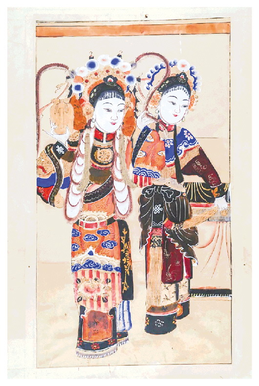 国家一级文物、戏曲年画《姑嫂英雄》,取材于民间故事《薛家将》,讲述的是薛金莲向其嫂樊梨花搬兵救父,姑嫂二人意见不一产生矛盾,以致动武,结果金莲战败服输,二人言归于好,樊梨花发兵破敌解围的故事。情节极富戏剧性,画中樊薛二人既具女儿娇态,又透傲人英姿,“壮丽山河多壮阔,中华儿女任驰驱”,表达出老百姓对英雄儿女的欢喜之情,由此抒发而出的一种爱国情怀,也是对观者情操的一种教化和陶冶