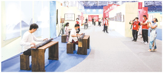 ▲我市以展会激发城市活力,通过展会呈现潍坊丰厚的历史文化积淀,让这座历史文化名城声名远播。图为第十四届中国(潍坊)文化艺术展示交易会上的诸城派古琴表演。              潍坊日报社全媒体记者 姜斌 摄