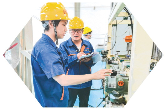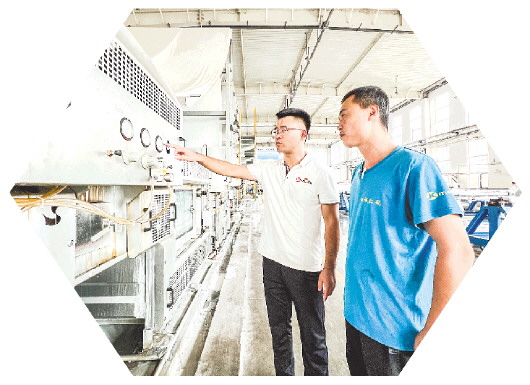 今年以来,昌乐县将“产才直连”作为出发点和落脚点,围绕加快推动智能装备制造、新材料等产业升级,加大专业人才引进,强化“订单式”人才培养,先后为35家企业引进培育相关人才75名。图为潍坊佳诚数码材料有限公司专家(左)为车间工作人员讲解新生产线技术要领。