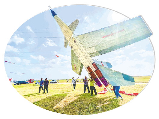 ▲蓄势待发的歼-15舰载机风筝。 潍坊日报社全媒体记者 李小龙 摄
