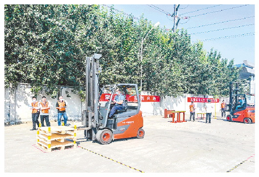 今年以来,昌乐县通过搭建展示技能、切磋技艺平台,积极开展技能竞赛等措施,切实弘扬工匠精神,加强知识型、技能型、创新型技能人才队伍建设。图为在近日举办的“才聚鸢都·技能兴潍”第三届潍坊市职业技能大赛——叉车工职业技能竞赛暨“世纪阳光杯”昌乐县第八届职业技能竞赛、山东世纪阳光职业集团第四届职工技能竞赛上,选手进行叉车载货移库叠托盘比赛。