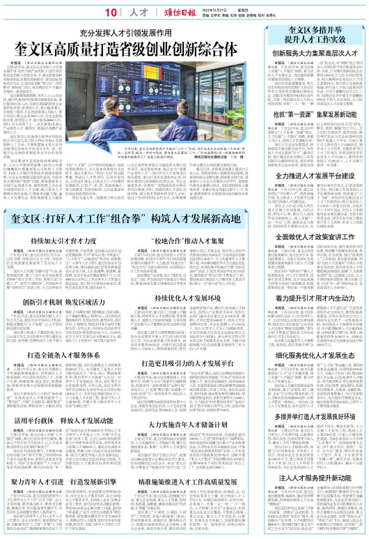 本报讯 (潍坊日报社全媒体记者 于菲)近年来,奎文区牢固树立“人才是第一资源”理念,大力实施“人才强区”战略,厚植人才沃土,奏响人才发展新乐章。