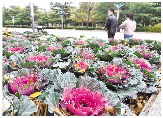 11月13日,伴随着降温天气到来,城区人民广场冬季的“当家花旦”羽衣甘蓝绽放出了最美的色彩,其叶已完全舒展开,为略显萧瑟的初冬增添了一抹亮丽,吸引了很多游客驻足观赏。