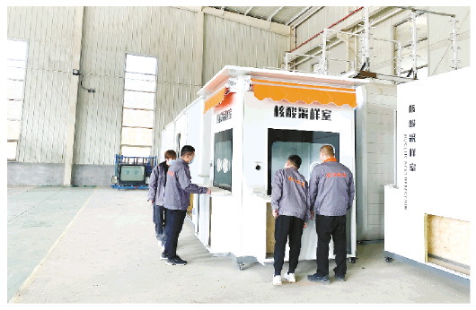 集成房屋产业是昌乐县重点发展的新产业之一。今年以来,该县围绕产业提质增效,积极推动相关企业加强相关产业人才引进和培养,持续提升产品质量,推出符合市场需要的新产品,着力提高企业竞争力,扩大市场占有率。图为德润绿建技术人员在检测新生产的核酸采样室集成房屋产品。