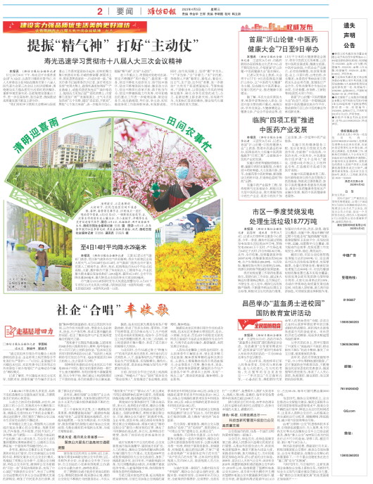 本报讯 (潍坊日报社全媒体记者 王亚欣)4月4日,记者从首届“沂山论健·中医药健康大会”上获悉,借助本次盛会的举办,临朐县将大力实施中医药跨越提升“四项工程”,全面推进中医药产业的发展。