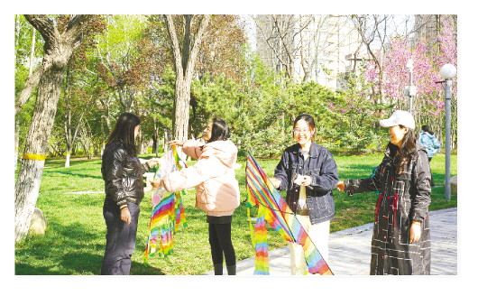 一场春雨过后,城区公园内万木生发,空气清新,成为一个个“天然氧吧”,人们纷纷走出家门,来到公园里呼吸新鲜空气,欣赏春日美景。图为4月8日,市民在市人民公园放风筝。