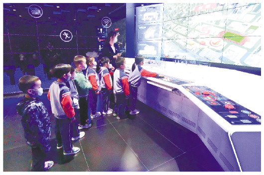 为加强对孩子们的国防教育、普及防空知识,近日,潍城区教师幼儿园组织孩子们走进潍坊市人民防空宣传教育馆,通过参观展馆和互动体验,让孩子们了解了国防知识,学习了防空防灾和自救互救的知识。图为孩子们在讲解员的带领下体验模拟指挥演练互动项目。 潍坊日报社全媒体记者 于哲 通讯员 王孖玉 摄