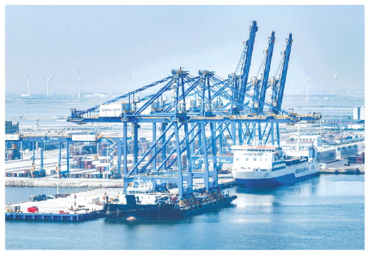 记者从山东港口潍坊港获悉,近日,港口17号泊位配套的3台自动化远控岸桥已全部到位。据了解,新增的3台岸桥均可实现本地控制作业、远程控制作业、半自动化作业三种作业模式,投入使用后,潍坊港区装卸能力将提升约30%。 潍坊日报社全媒体记者 薛静 摄