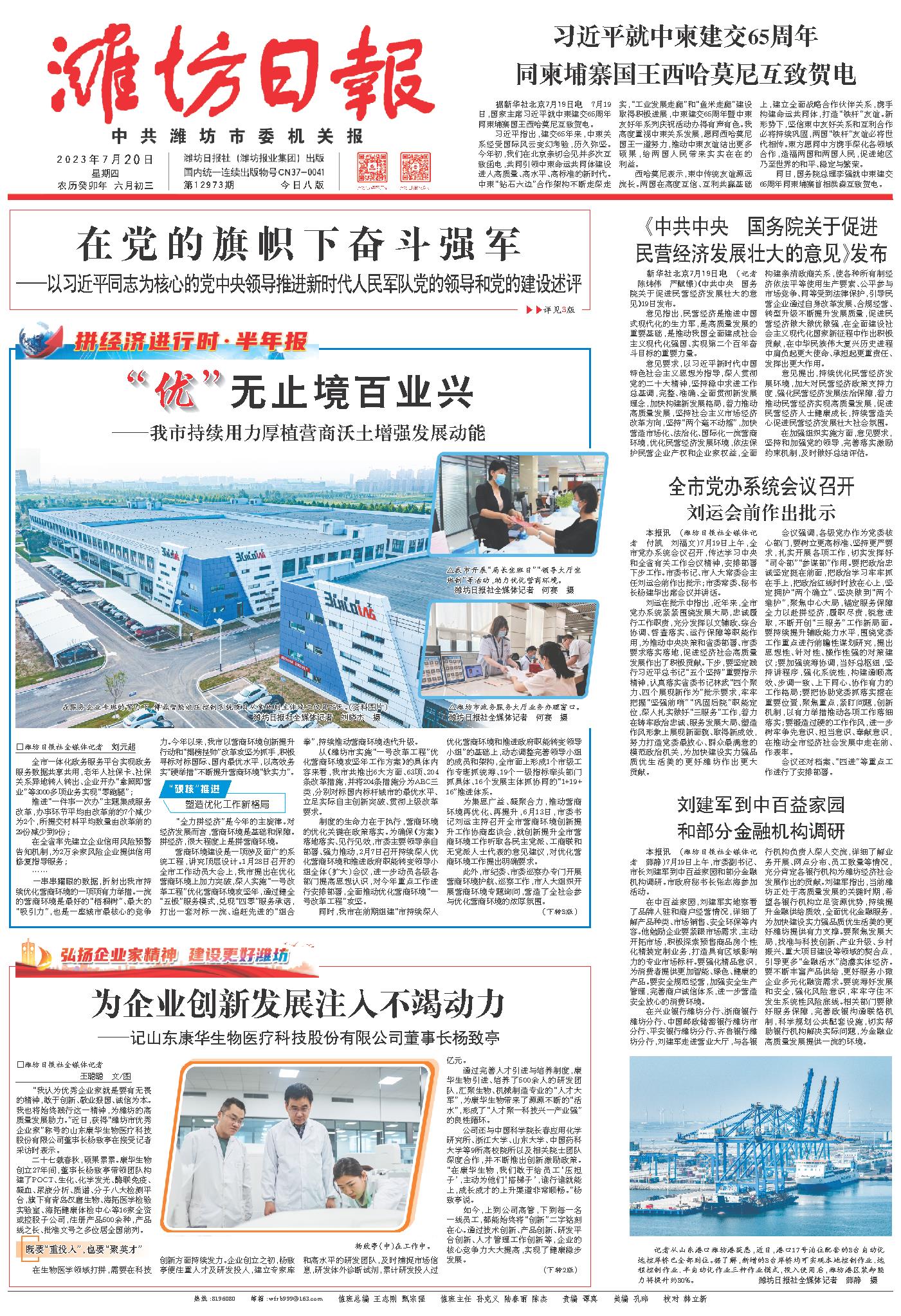 “我认为优秀企业家就是要有无畏的精神,敢于创新、敬业报国、诚信为本。我也将始终践行这一精神,为潍坊的高质量发展助力。”近日,获得“潍坊市优秀企业家”称号的山东康华生物医疗科技股份有限公司董事长杨致亭在接受记者采访时表示。