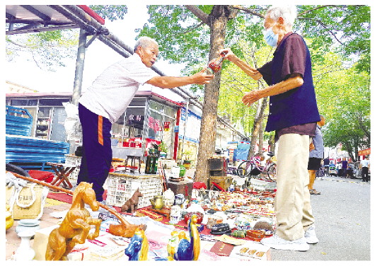 潍坊的旧货大集有着浓郁的地方特色,各种旧物件记录着潍坊人的生活习惯、饮食喜好、历史印记等。位于城区潍州路与玉清街交叉口西北角的二手物品市场人气十足,熙熙攘攘的人群穿行在琳琅满目的老物件中,十分热闹。图为9月4日,热闹的旧货大集吸引了许多前来“淘宝”的市民。