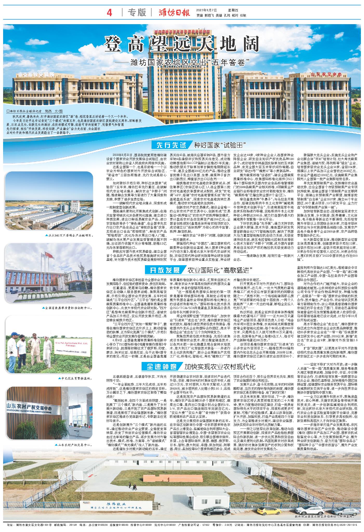 潍坊国家农综区承担着为全国农业开放发展探路子、创经验的国家使命,责任沉甸甸。