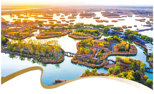 如果说巨淀湖、双王城水库是依托自然资源巧妙引水改造,那么林海生态博览园就是北大洼人在盐碱地上创造的另一个奇迹。博览园内,绿色的林是底色、灵动的水是韵律,构成了一幅秀比江南的水上世界。在这里,可闲庭信步,看遍花红柳绿;可安坐茶亭,品一壶香茗;可垂钓,可赏荷,可看天上闲云游走……岁月静好,双王城穿越时光绽放出无尽的美丽。