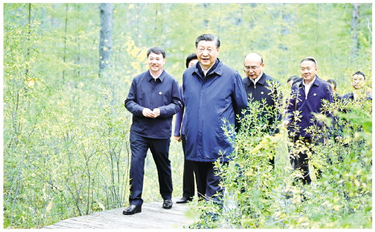 9月6日至8日,习近平在黑龙江省委书记许勤和省长梁惠玲陪同下,来到大兴安岭、哈尔滨等地,深入林场、乡村、高校等进行调研,前往灾后恢复重建现场看望慰问受灾群众。