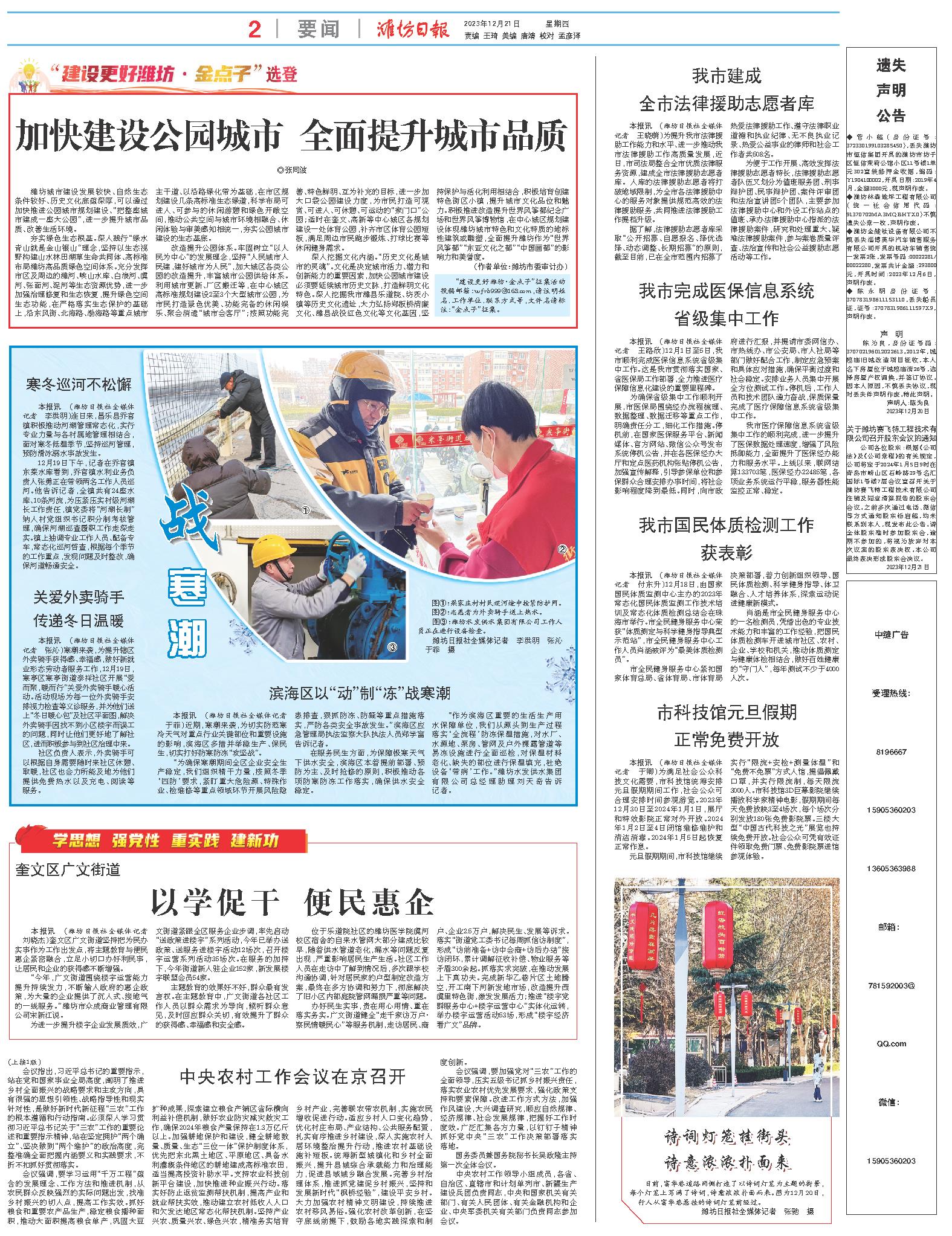 本报讯 (潍坊日报社全媒体记者 王晓萌)为提升我市法律援助工作能力和水平、进一步推动我市法律援助工作高质量发展,近日,市司法局整合全市优质法律服务资源,建成全市法律援助志愿者库。入库的法律援助志愿者将打破地域限制,为全市各法律援助中心的服务对象提供规范高效的法律援助服务,共同推进法律援助工作提档升级。