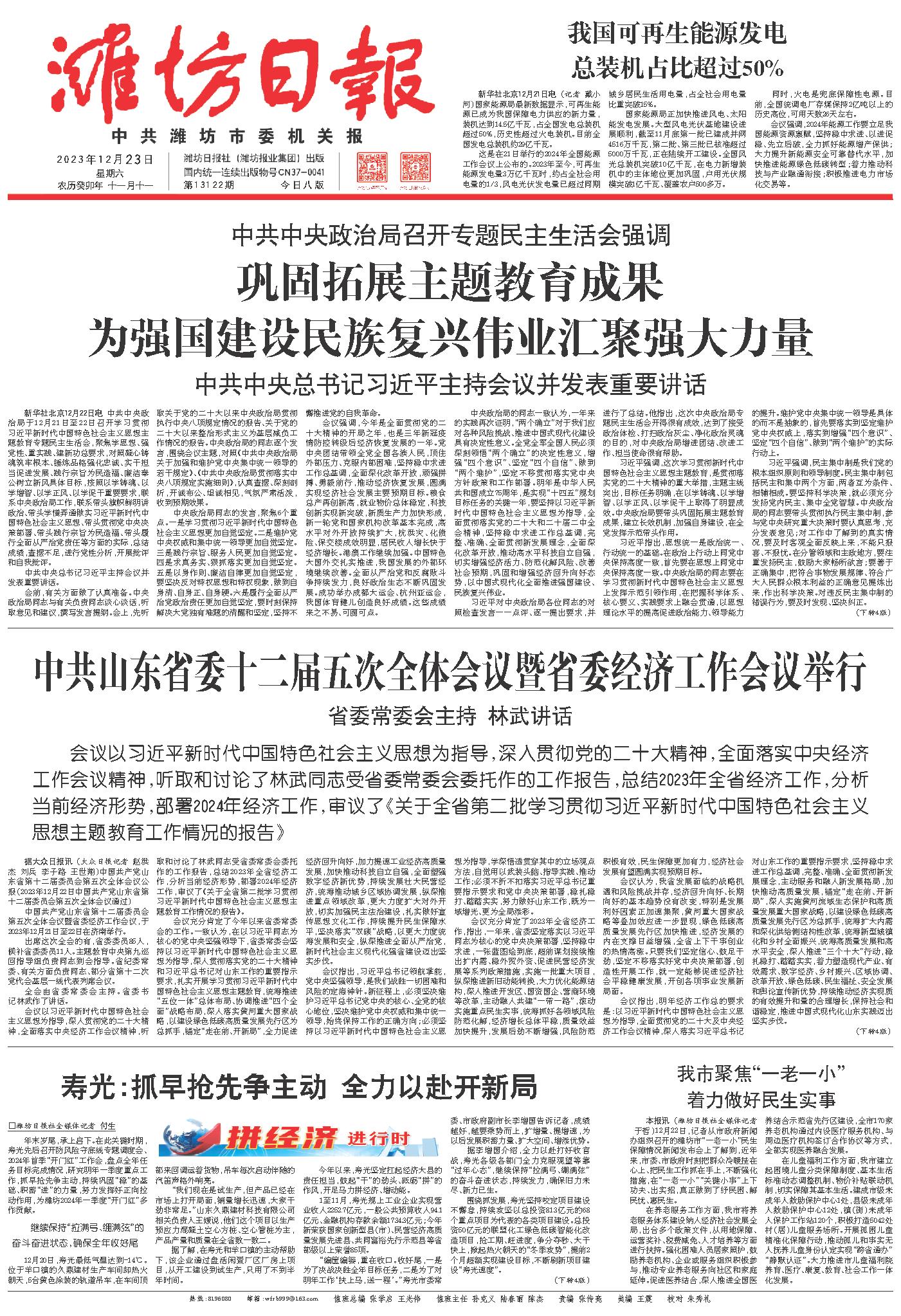 中国共产党山东省第十二届委员会第五次全体会议暨省委经济工作会议,于2023年12月21日至22日在济南举行。