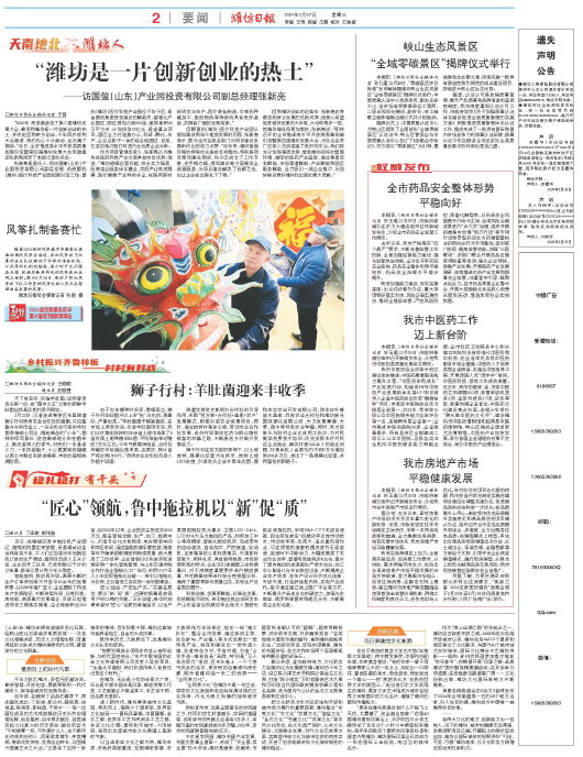 近日,在潍城区鲁中拖拉机产业园区,轰鸣的机器往来穿梭,吊装调试设备运转有条不紊,工人们正加紧对年后拖拉机订单的生产调试。据项目负责人王永介绍,企业自开工以来,已收到数以千计的订单量,排单已累计到今年三季度。