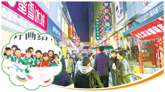 △夜晚的泰华商圈人头攒动。   <孩子们用画笔描绘春天。   潍坊日报社全媒体记者 张驰 摄