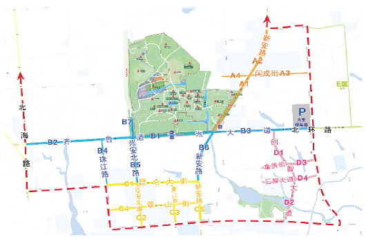 D临时停车区为创智大道(北环路与青龙湖东路)、集贤街(锦贤路至东湖路)、汇智大道(锦贤路至东湖路)。