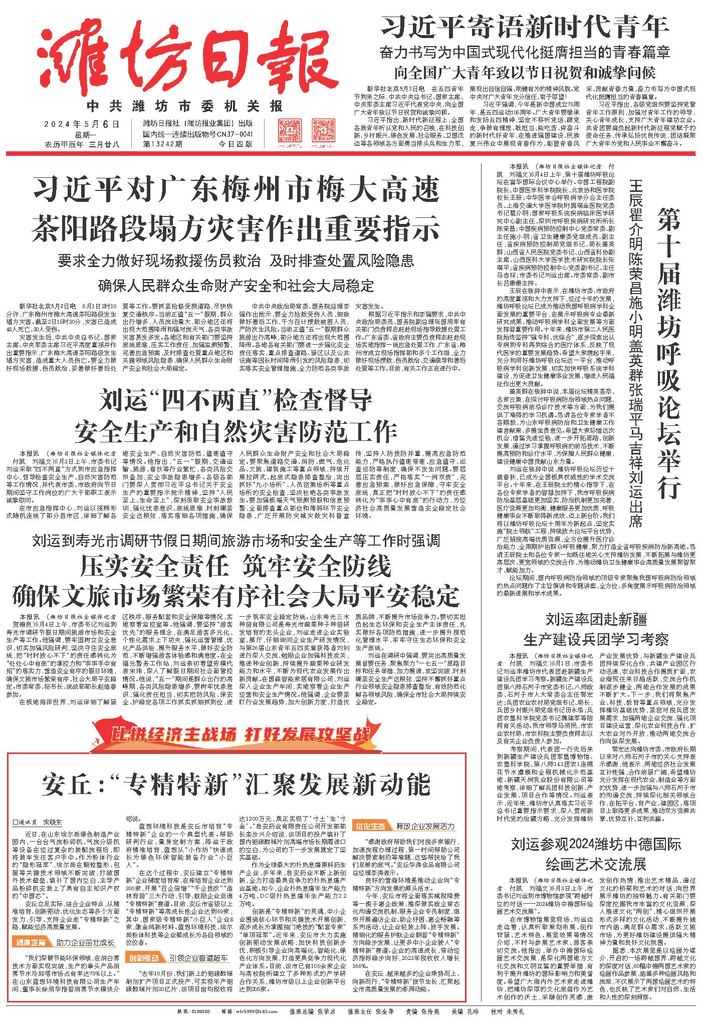 今年,安丘市将全面落实减税降费等一揽子惠企政策,推深做实政企常态化沟通交流机制、服务企业专员制度,组织开展遍访企业、助企纾困、惠企畅融等系列活动,让企业轻装上阵、放手发展。精细化的服务护航企业朝着“专精特新”方向稳步发展,让更多中小企业驶入“专精特新”赛道。企业的高速成长,带动经济指标稳步向好,2023年税收收入增长16.6%。