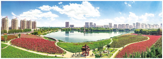 穿城而过的小丹河沿岸,宛如一幅无比旖旎的生态画卷:碧水潺潺、花海芬芳,绿植成片、景点相连,精心设计的景观散发出贴近自然的韵味。