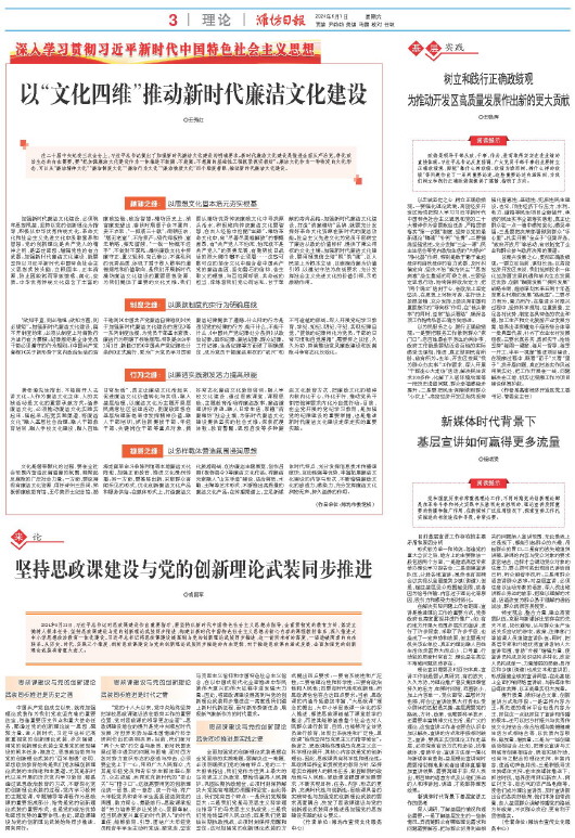 党和国家历来非常重视理论工作,不同时期党的创新理论都是在革命斗争和伟大实践中从胜利走向胜利的,理论宣讲发挥重要的传播和推广作用,在新媒体广泛应用情况下,探索宣讲工作扎实推进的有效途径和手段,非常必要。