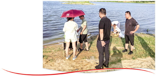 该街道主要负责人带队,组织街村干部、河管员、志愿者等力量,持续加强对重点河段、重点水域的巡逻力度,确保“看好人”“管住水”;线上充分利用微信群、标识标牌、语音播报等宣传防溺水知识;线下通过张贴海报、悬挂横幅等形式进行宣传教育,引导群众自觉远离河道,共同筑牢生命“安全线”。图为工作人员对在河边玩耍的群众进行劝离。