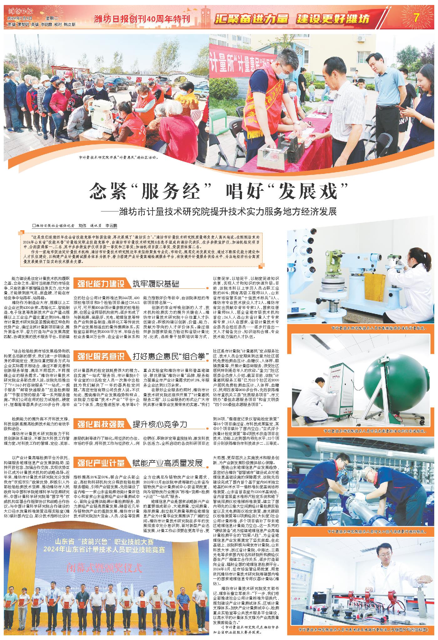 作为一家地市级法定计量技术机构,潍坊市计量技术研究院近年来坚持聚焦专业化、市场化、规范化的发展定位,通过不断深化能力建设和人才队伍建设,以构建产业计量测试服务体系为抓手,着力搭建产业计量高端检测服务平台,有效提升计量服务供给水平,为当地经济社会高质量发展提供了坚实的技术服务支撑。