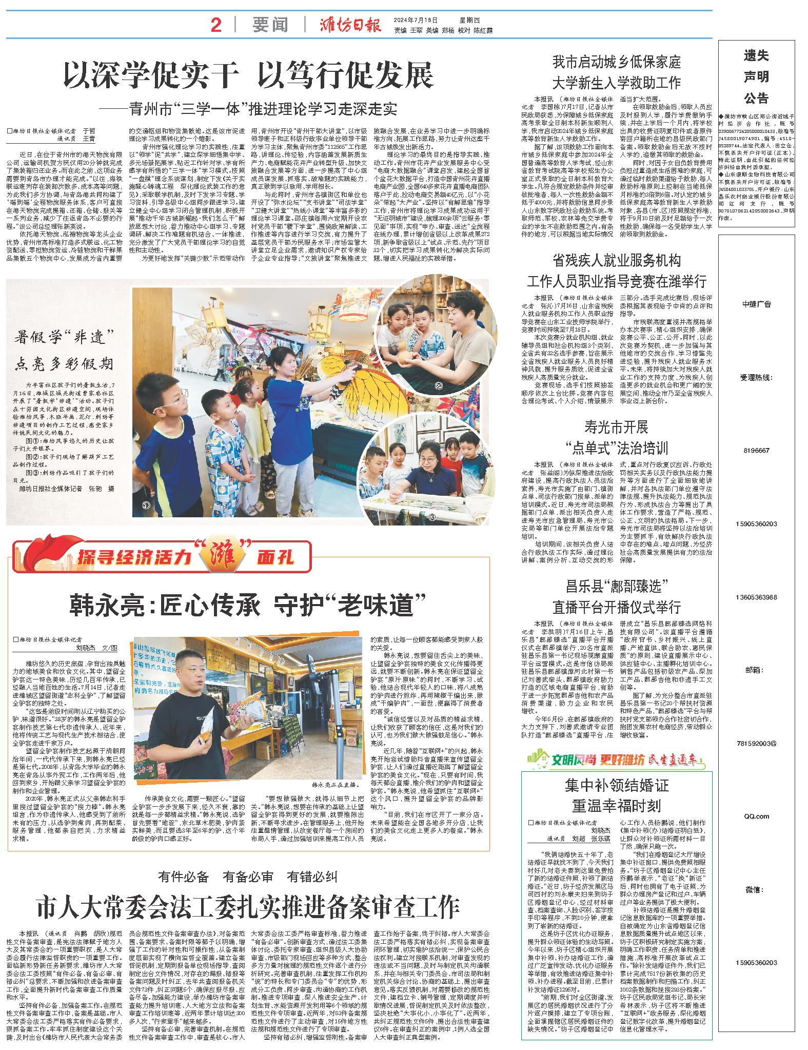 本报讯 (通讯员 肖鹏 胡欣)规范性文件备案审查,是宪法法律赋予地方人大及其常委会的一项重要职权,是人大常委会履行法律监督职责的一项重要工作。面临新形势新任务新要求,潍坊市人大常委会法工委按照“有件必备、有备必审、有错必纠”总要求,不断加强和改进备案审查工作,全面提升新时代备案审查工作质量和水平。
