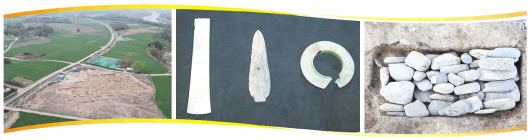 左图:四川省广汉市三星堆遗址发掘区(2024年3月23日摄)。中图:三星堆遗址发掘区出土的玉器(2024年7月21日摄)。右图:三星堆遗址发掘区出土的石斧坑第一层(2023年3月13日摄)。(新华社发)
