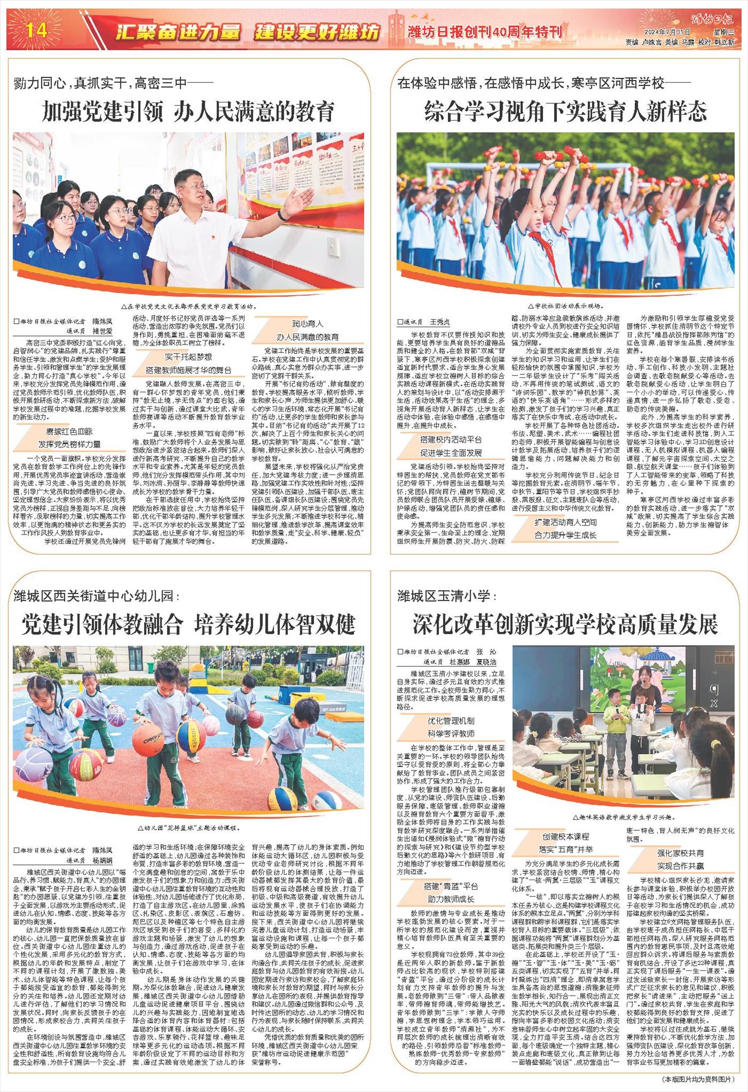 本报讯 (潍坊日报社全媒体记者 张沁 通讯员 黄卫健 任敬君)在寿光市委教育工委和寿光世纪教育集团党委的引领下,寿光世纪东城学校(小学)党支部围绕集团“培育孩子生命成长的力量”这一核心办学理念,深耕生活德育课程研究,以成长体验为德育切入点,以“尊重师生个性、落实立德树人、坚持问题导向、倡导自主学习”为育人文化,精心构建“尊德问学、齐心向党”党建品牌,成效显著。