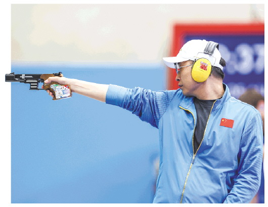 在8月5日进行的巴黎奥运会射击男子25米手枪速射项目决赛中,中国队34岁的老将李越宏顶住压力,以32中的成绩逆袭夺冠,这是中国射击队在该项目上获得的历史首枚奥运金牌。 (新华社发)