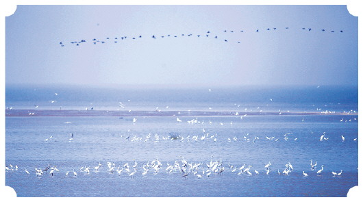 9月24日,在昌邑北部沿海滩涂上,包括鸬鹚和鹭鸟在内的几万只水鸟聚集在这里,追逐着潮水觅食。潍坊的北部滩涂是候鸟迁徙路线,每年秋冬会迎来大批水鸟路过。潍坊沿海优良的生态环境,给众多鸟类提供了广阔的栖息地,成就海天之间的一道和谐景观。