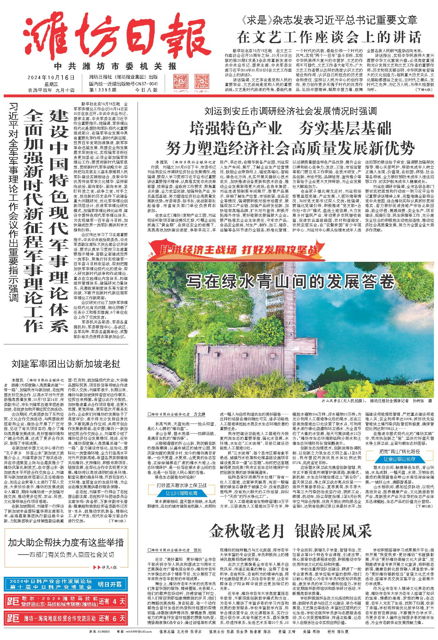 从郁郁葱葱的沂山山脉,到沉鳞竞跃的渤海潮涌;从遍布城区的城市公园,到风景如画的美丽乡村,如今的潍坊满目青绿。一份天更蓝、水更清、山更美的生态答卷,正徐徐铺展在广袤的潍水大地上。生态环境保护,是一份写在绿水青山间的答卷,也是一份写在人民心里的答卷。