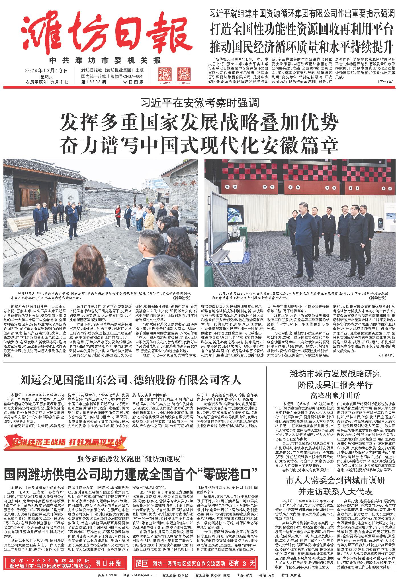 本报讯 (潍坊日报社全媒体记者 于哲)10月17日,市人大常委会党组书记、主任高峰到诸城市开展调研并走访联系人大代表。市人大常委会秘书长杜建华参加。