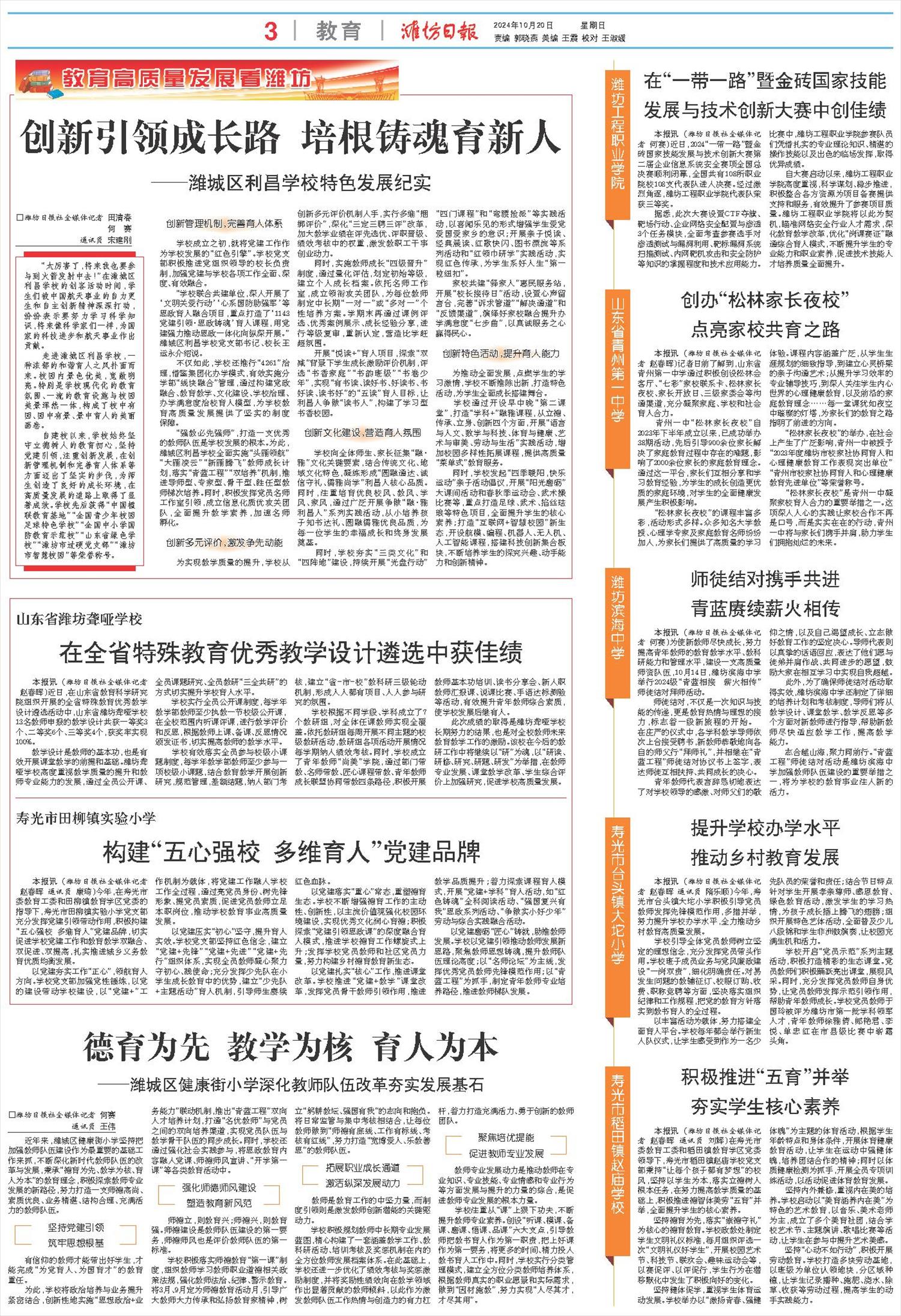 本报讯 (潍坊日报社全媒体记者 赵春晖 通讯员 隋乐顺)今年,寿光市台头镇大坨小学积极引导党员教师发挥先锋模范作用,多措并举,努力提升学校办学水平,全力推动乡村教育高质量发展。