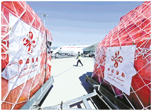 据中国驻黎巴嫩大使馆介绍,这批物资总重58吨,包含麻醉剂、一次性使用气管插管、手术衣等多项黎巴嫩急需的医疗物资。