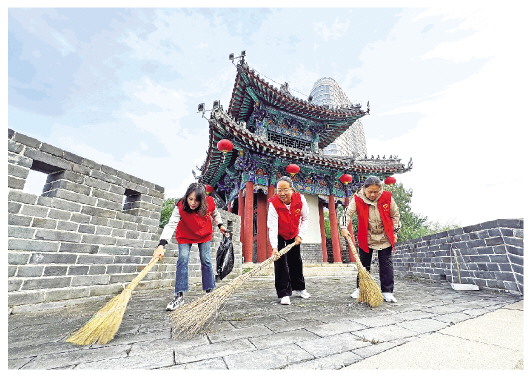 10月25日,在城区通济门的一段古城墙,来自奎文区东关街道李家街社区的志愿者正在对城墙进行清扫。当日,该社区开展了一场“为古城墙‘洗脸’”活动,志愿者们用手捡、小铲子铲、扫帚扫等方式,对古城墙的杂草及卫生死角进行了全面清理,为城市“颜值”加分。