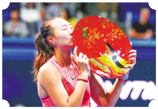 10月27日,郑钦文在颁奖仪式上亲吻奖盘。当日,女子网球选手协会(WTA)500东京站展开女单决赛,中国“一姐”郑钦文2比0战胜美国选手肯宁,职业生涯首夺该站冠军。 (新华社发)