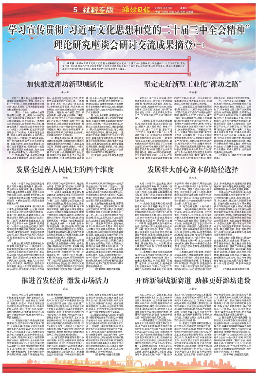党的二十届三中全会就推进新型城镇化体制机制作出部署。当前及今后一个时期,人口向城镇集聚是发展大势,应认真谋划,以高质量新型城镇化赋能更好潍坊建设。