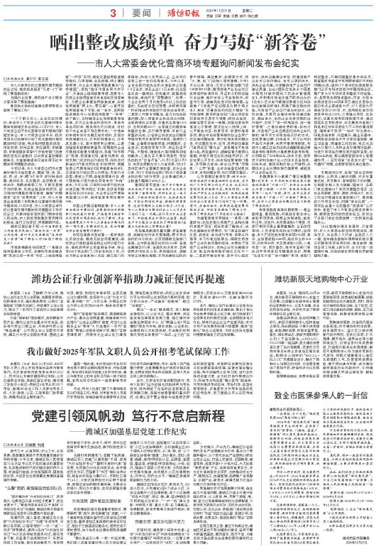 本报讯 (记者 隋炜凤)12月28日,潍坊新辰天地购物中心在奎文区启幕。这座矗立在城市核心商圈的全新购物中心,以其大体量、多业态和前沿体验,为市民开启了购物休闲娱乐的全新空间。