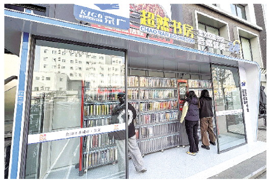 2024年12月30日,市民在奎文区泰华商圈“超然书房”借阅图书。书房内部是一整排书架,这排书架由一个个透明小格子组成,每本图书都有专属的格子,格子上有编码,通过触摸大屏实现人机交互,市民可实现24小时自助借阅。 记者 张驰 摄