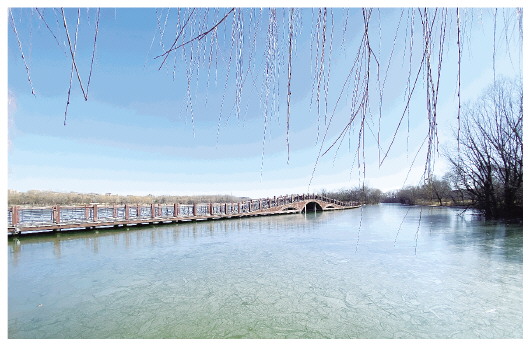 1月17日,潍坊城区天空湛蓝如洗,鸢都湖更是美如画卷。