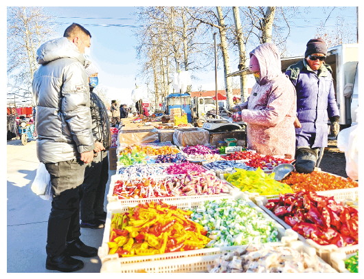 1月15日上午,在寒亭区寒亭街道的“海洋大集”上,人们正在置办年货。记者在现场看到,道路两侧的摊位依次排开,热气腾腾的美食、各色糖果、精美的“福”字春联、火红的灯笼……热闹喜庆的集市上,到处洋溢着浓浓的年味。
