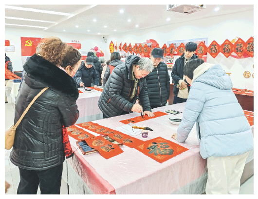 近日,潍坊市总工会在潍城区月河社区开展“送万福 进万家”书法公益活动。活动现场,职工书法爱好者挥毫泼墨,为社区群众书写了300余副春联和“福”字,不仅传递了对新年的美好祝愿,更蕴含着对劳动的崇高敬意和对美好生活的向往。