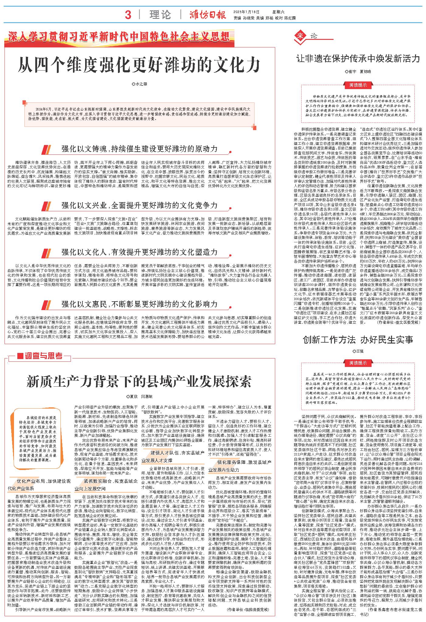非物质文化遗产是中华优秀传统文化的重要组成部分,是中华文明绵延传承的生动见证。习近平总书记多次对非物质文化遗产保护工作作出重要指示,强调要加强非物质文化遗产的保护和传承。奎文区以非遗保护和传承为突破口,在非遗资源挖掘、传承与传播、融合发展等方面下功夫,让非物质文化遗产在新时代绽放新光彩。