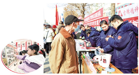 ◥在滨海区学雷锋便民志愿服务活动现场,志愿者正在为群众维修小家电。记者 于菲 摄 ▼在潍城区城关街道增福堂社区,小朋友被宣传雷锋精神的纪念品展览所吸引。 记者 张驰 摄