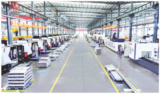 华建铝业的现代化铝型材加工车间(资料图片)。