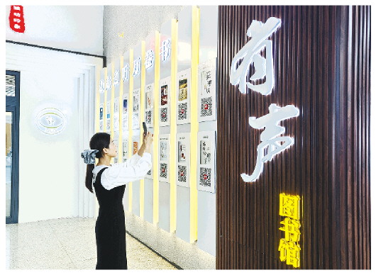 5月15日,旅客在潍坊北站候车大厅的电子听书墙前扫码听书。近日,潍坊北站完成提升改造,增设“潍坊象”雕塑,完善了母婴室配套设施,设置了免费充电设备等,不仅对众多硬件进行了升级换代,还大力提升服务质量,聚力打造“城市会客厅”,以全新面貌迎接南来北往的旅客。