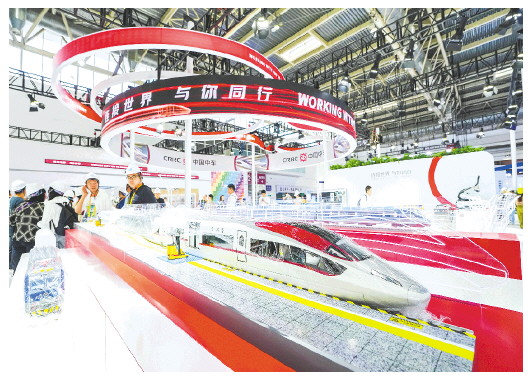 7月14日在第三届中国国际供应链促进博览会先进制造链展区拍摄的中国中车展位。