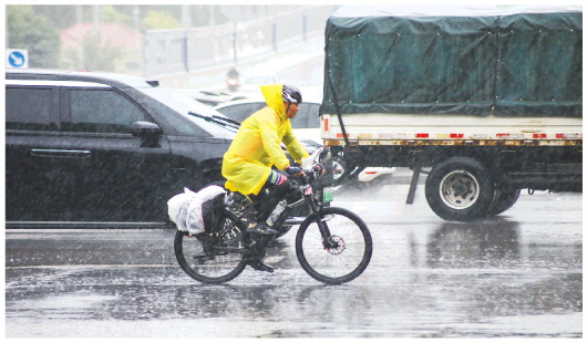 图为8月31日,城区清平路附近,市民在雨中出行。 记者 杨小凡 摄